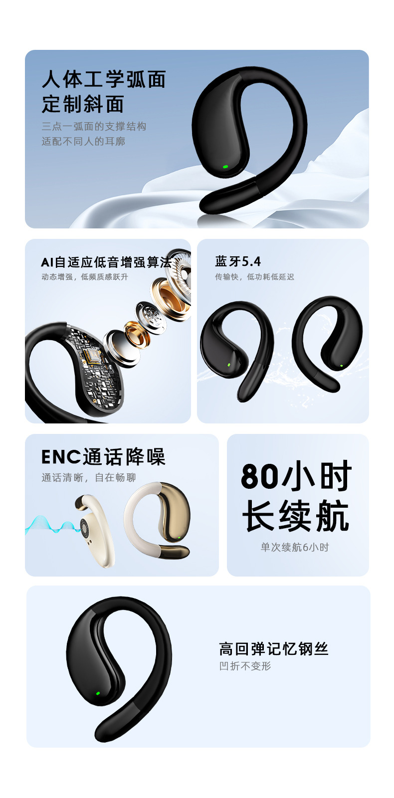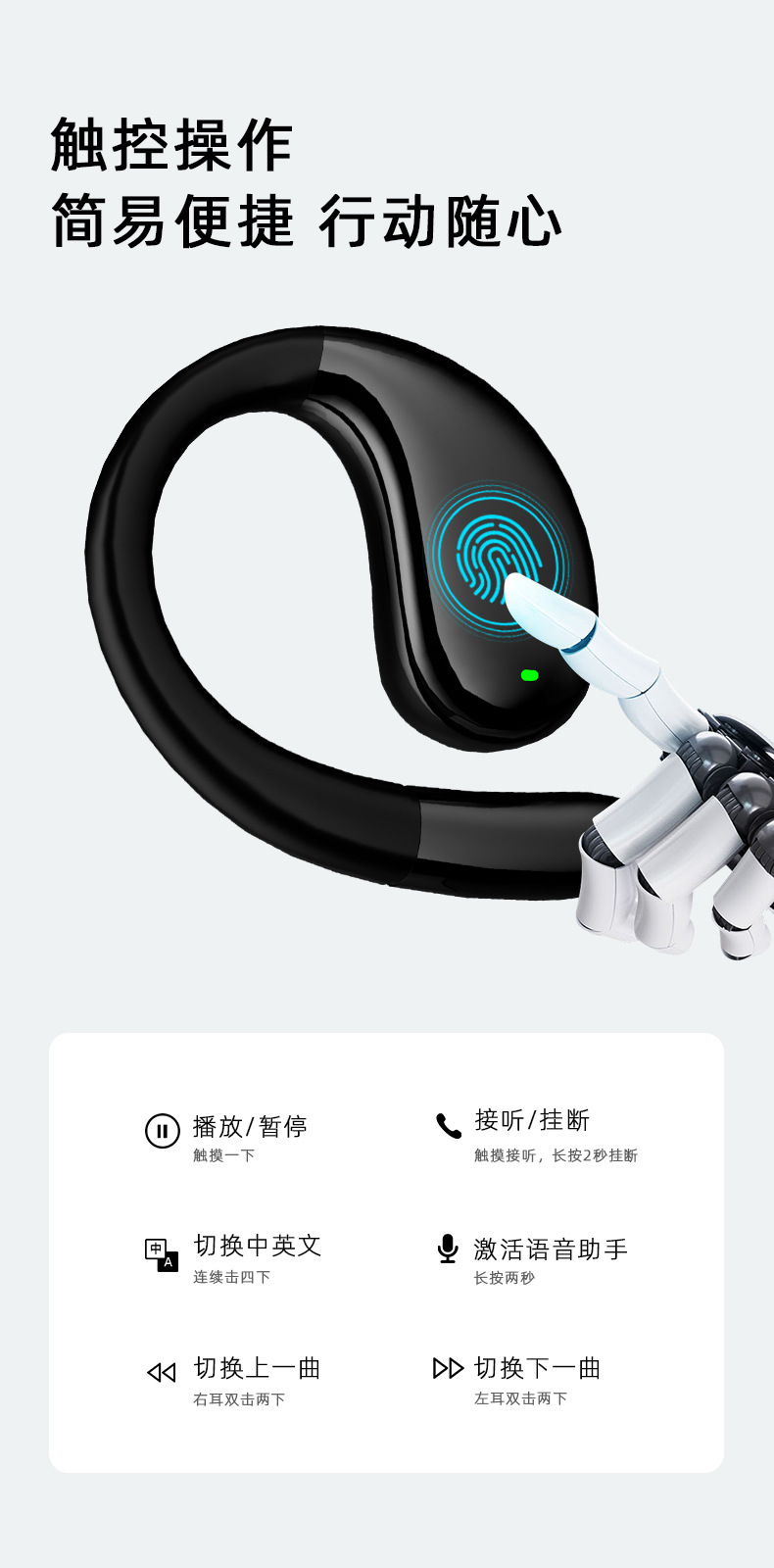 10米传输/数显屏幕/协议5.4/挂耳式/双边立体声/可选AI翻译版/芯片中科蓝讯/续航4-8小时